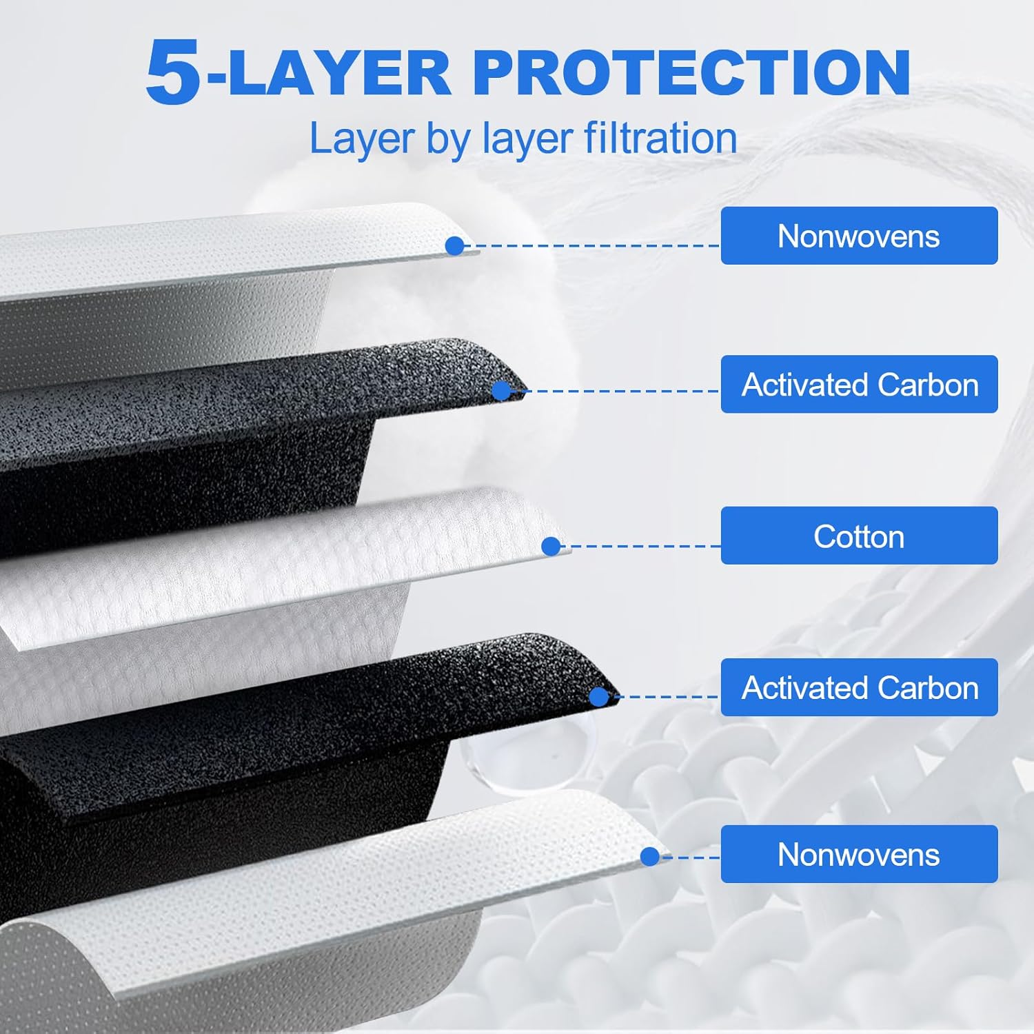 This air filter adopts a 5-layer protection design: melt-blown electrostatic layer, HEPA filter layer and granular activated carbon to ensure effective filtration of pollutants in the air.