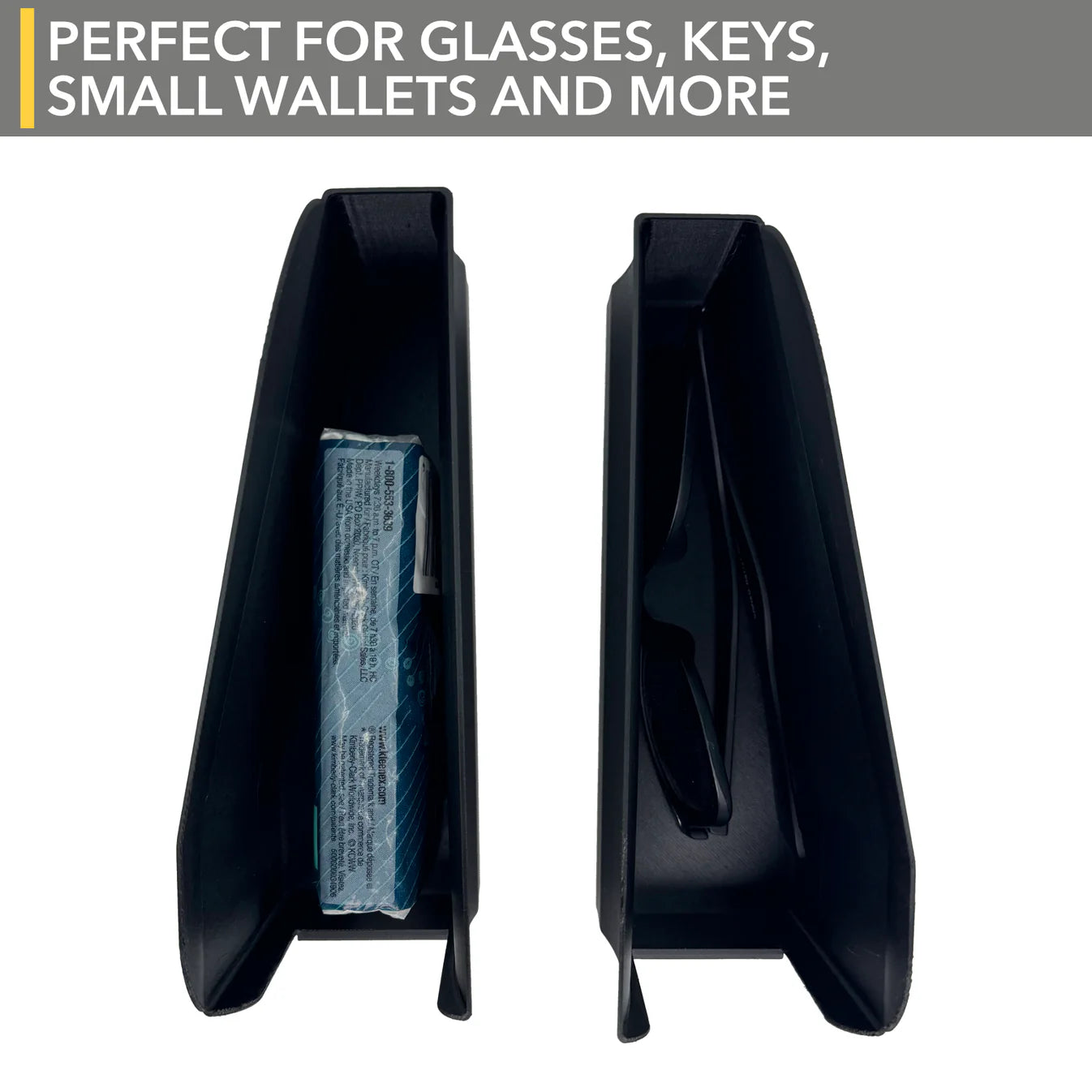 Transform the interior of your Cybertruck with the TWRAPS custom-designed storage trays, a perfect blend of functionality and style tailored specifically for the Cybertruck's interior door handles. Made from premium black matte plastic and lined with faux leather, this tray not only adds an element of sophistication to your vehicle but also serves as a practical solution to minimize noise from rattling items, thereby enhancing your driving experience. Its superior quality and design seamlessly integrate into your vehicle's aesthetic, proving that utility and elegance can coexist.