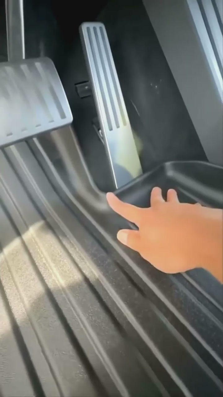 These all-weather liners for your Cybertruck are made from thermoplastic elastomer materials for excellent protection and floor coverage. Unlike most mats, our interior mats feature high walls that help contain moisture, spills and dirt. Simply empty out, hose down, and place back on the floor.