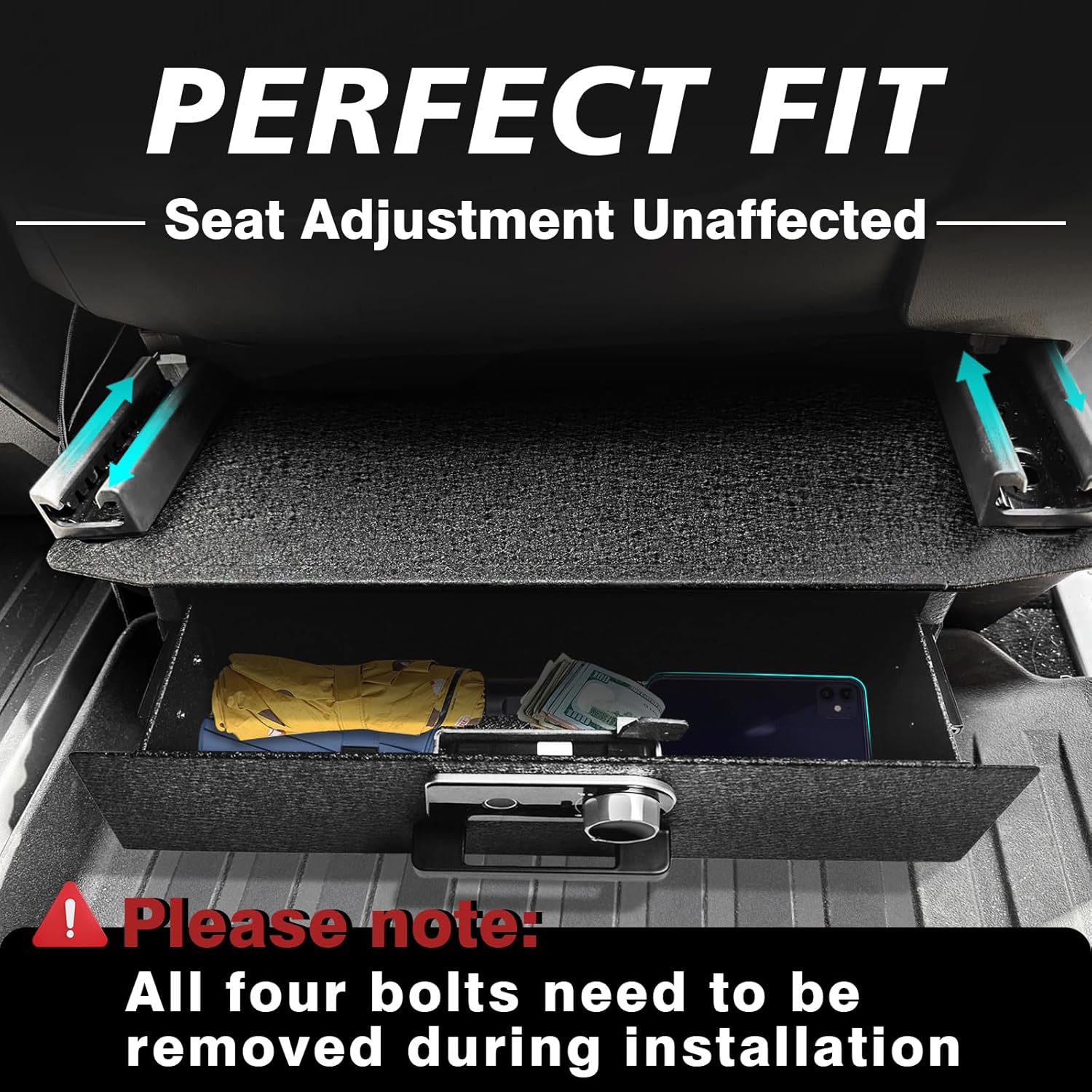 - Perfect Fit: This front under-seat drawer safe utilizes 3D laser scanning technology to ensure a precise fit for the Cybertruck without interfering with seat adjustments